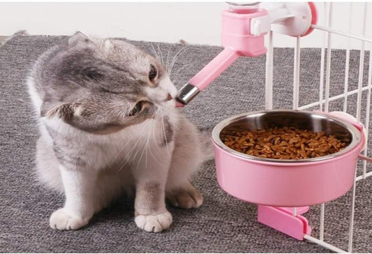 وعاء قفص للكلب قابل للإزالة من الفولاذ المقاوم للصدأ وأوعية طعام للمياه كوب للقطط والجرو