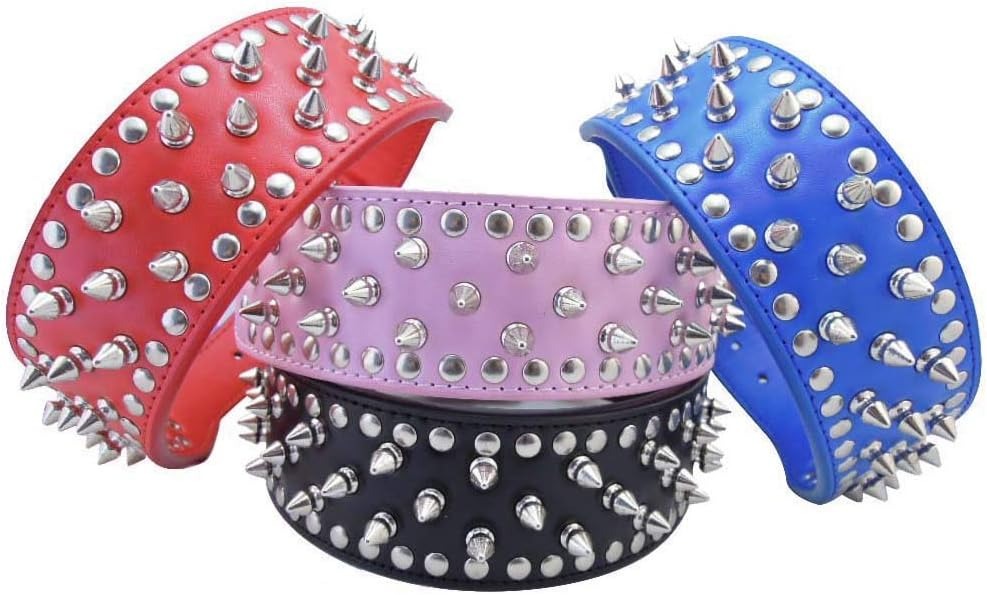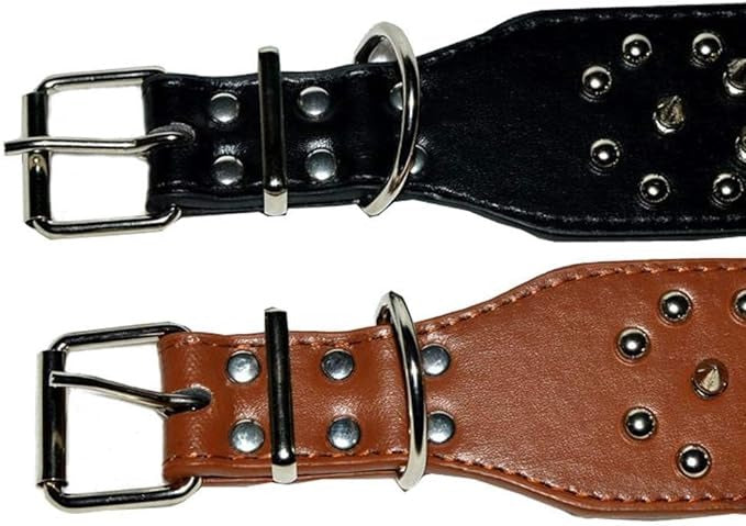 أطواق كلب مرصعة بمسامير من الجلد الطبيعي قابلة للتعديل