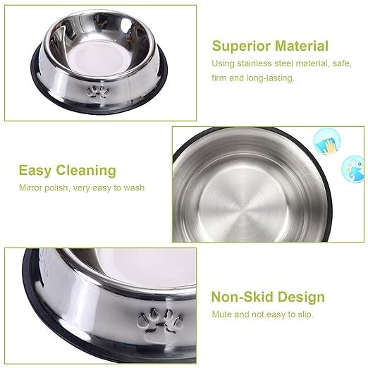 أوعية طعام عملية للحيوانات الأليفة للكلاب والقطط، أوعية طعام من الفولاذ المقاوم للصدأ غير قابلة للانزلاق
