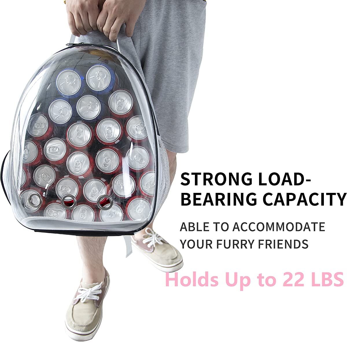 جيدة التهوية وقابلة للتنفس: حقيبة حامل القطط، استخدم التصميم الشبكي الممتاز للحفاظ على تهوية الهواء الجيدة لحيوانك الأليف. مصممة بـ 9 فتحات تهوية على ثلاثة جوانب، مما يضمن تهوية جيدة للهواء لحيوانك الأليف. يمكن أن يوفر التصميم القوي دعمًا جيدًا للجزء السفلي، ولا يتغير شكله عند حمل أصدقائك الصغار من الفراء على الظهر.