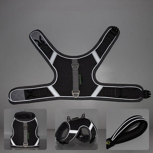 ، حزام رياضي قابل للتنفس، حزام صدر للكلب عاكس، مع مقبض، قابل للتعديل