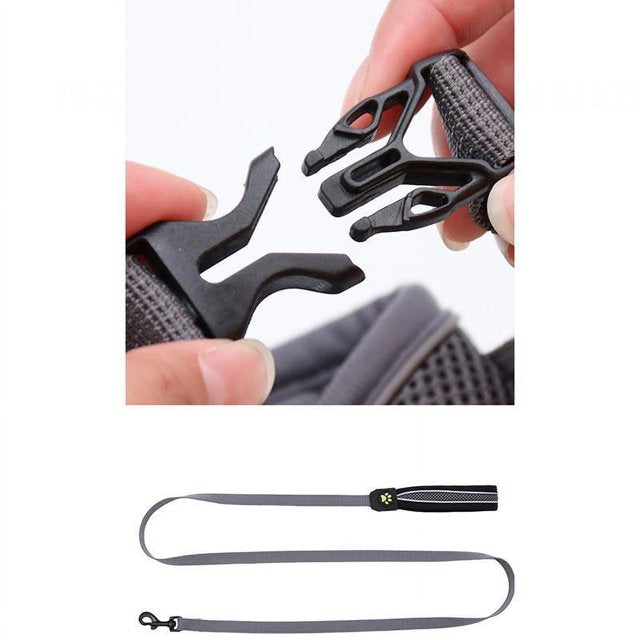 {حزام للكلاب مزود بمقبض مانع للسحب} - . تُستخدم المشابك الخلفية للمشي والركض غير الرسمي، وقد تم تصميم المشابك دون اختناق أو توقف عن السحب أثناء المشي، وهي مثالية لتدريب الكلاب أو العمل. يوفر المقبض الناعم المبطن تحكمًا إضافيًا لتوجيه كلبك.