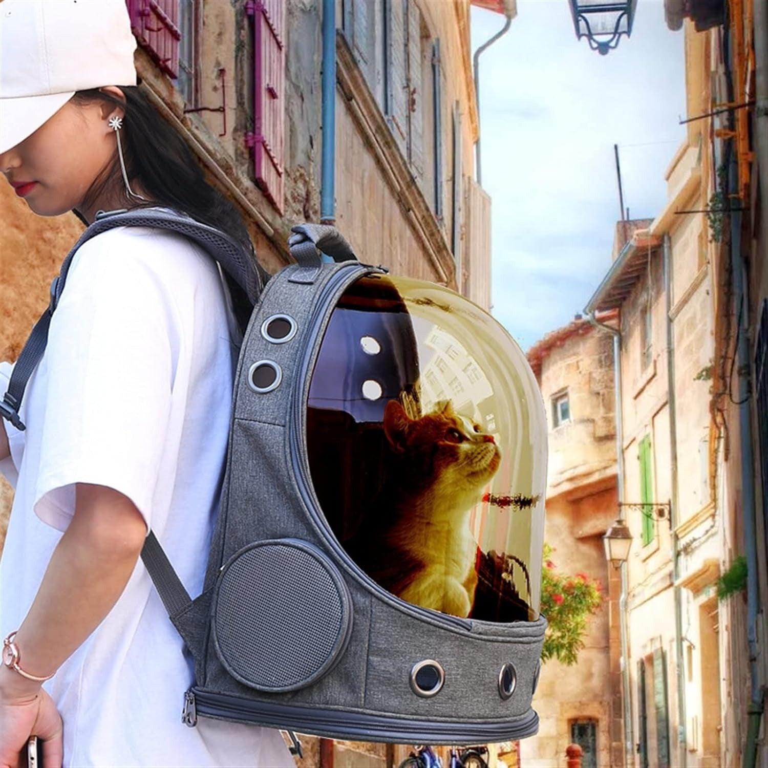 حقيبة ظهر لحمل الكلاب، حقيبة سفر للقطط مع حقيبة للوجبات الخفيفة، بكبسولة فضائية قابلة للتنفس
