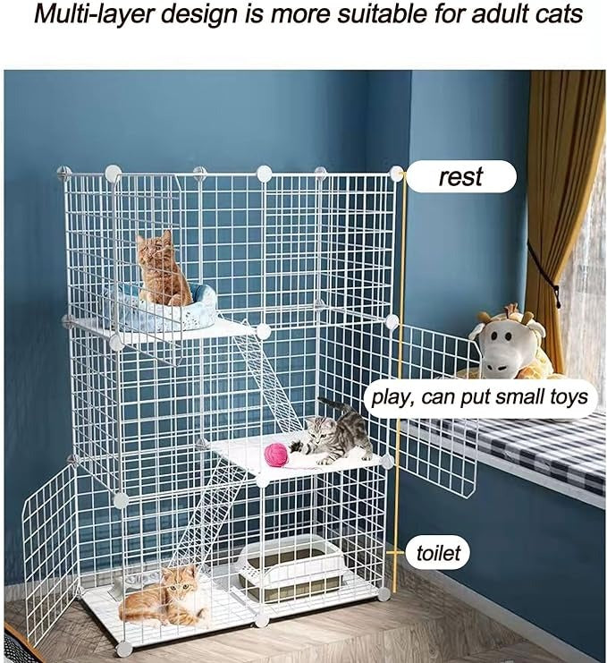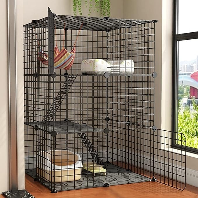 【تصميم يدوي الصنع】يمكن تجميع قفص القطط الداخلي هذا بسهولة في أشكال مختلفة ويمنح حيوانك الأليف الصغير مساحة مرنة، ويمكن أيضًا إقرانه بمجموعات  متعددة إذا كنت تريد حجمًا أكبر.