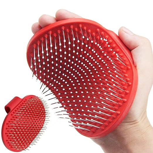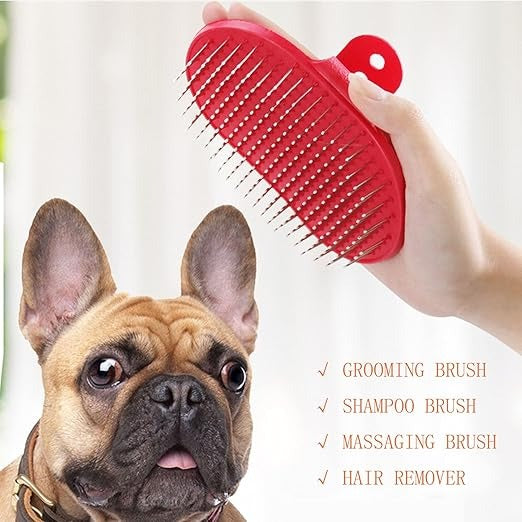 لأليفة، فرشاة دبوس مطاطية محمولة باليد للكلاب والقطط، أمشاط تدليك القطط مع مقبض دائري قابل للتعديل وفرشاة قطط من الفولاذ المقاوم للصدأ لتساقط الشعر (فرشاة شامبو للحيوانات اأحمر)