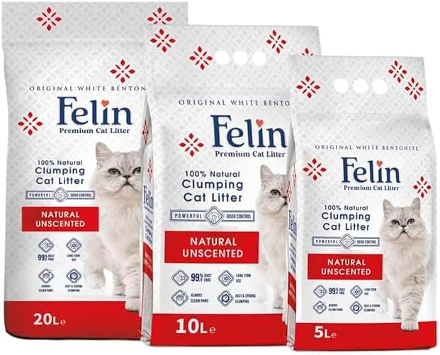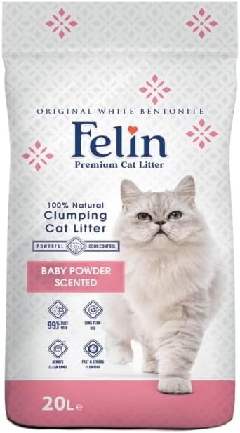 مجموعة فضلات القطط من فيلين، بنتونيت طبيعي 100%، خالية من الغبار بنسبة% 99.5