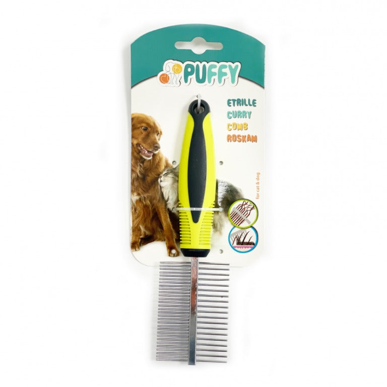 جانب ذو أسنان واسعة لتنظيف وإزالة الفراء السائب وجانب الأسنان الكثيفة للحصول على لمسة نهائية رائعة