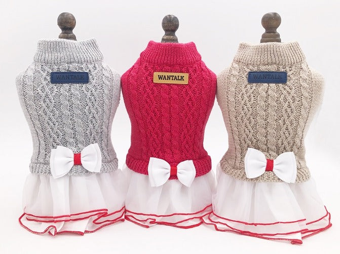 ملابس للقطط والكلاب الصغيرة على شكل جرزة من الصوف وتنورة لون بيج