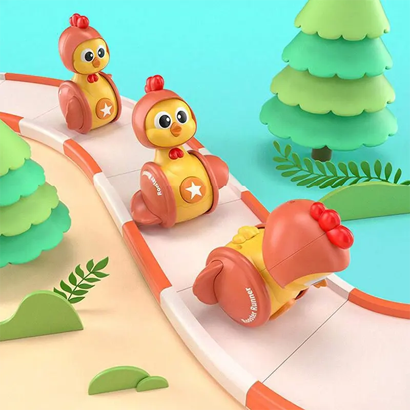 تم تصميم اللعبة بعجلات جانبية تساعدها على التحرك بسلاسة، مما يضيف عنصر المرح والتفاعل. كما يبدو أن لديها خاصية الاهتزاز أو إصدار الأصوات عند لمسها، مما يجعلها مثالية لتحفيز الحواس وتعزيز مهاراتهم الحركية.