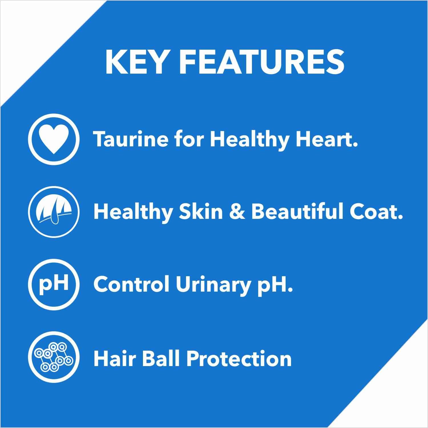 يحتوي على التورين للحفاظ على صحة القلب والجلد والفراء يساعد في التحكم في مستوى الحموضة في البول ومنع تكوين كرات الفرو